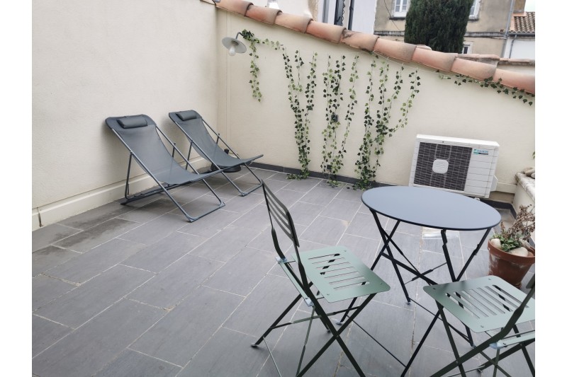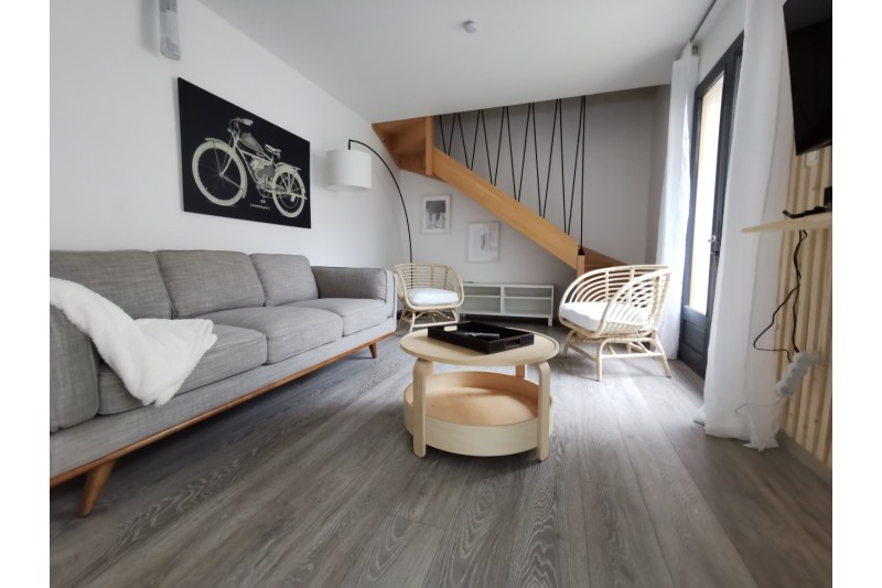 Agréable maison entièrement équipée, avec bail meublé classique, idéalement située à moins de 10 minutes à pied des remparts (rue de la République).