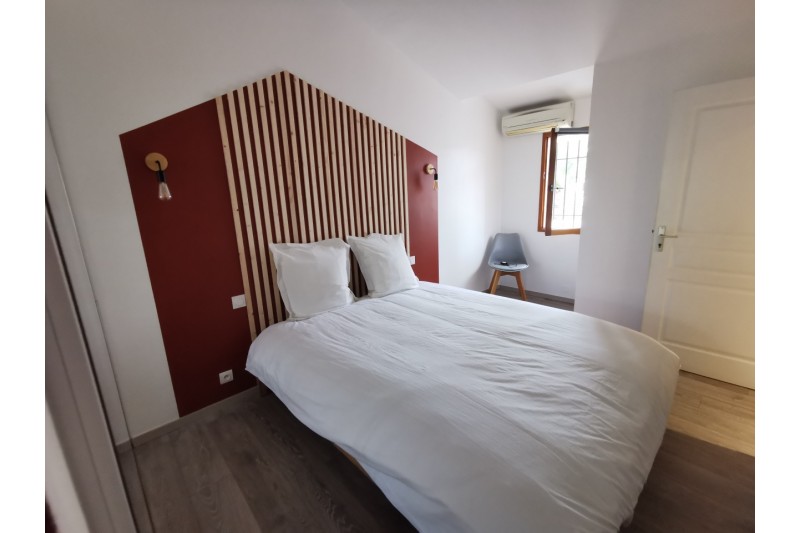 Au 1er étage, la maison dispose de trois chambres climatisées, d'une salle d'eau avec WC. L'une des chambres bénéficie d'un accès à une terrasse privative.